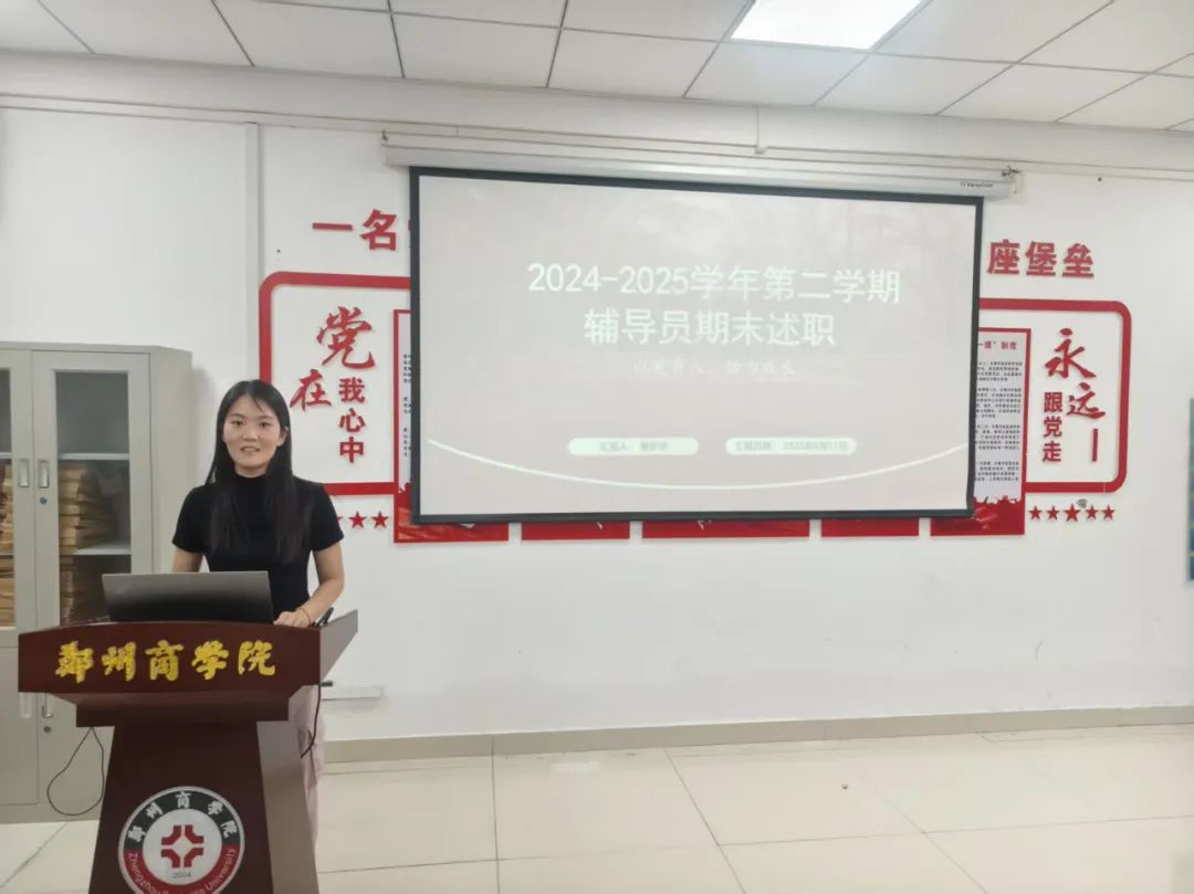 会议伊始,我院辅导员老师们依次进行工作总结汇报,辅导员们立足本学年工作重点,围绕2024-2025学年第二学期辅导员工作的业绩与实效、今后的工作思路与计划、当前工作中存在的问题与困难等方面展开述职汇报。