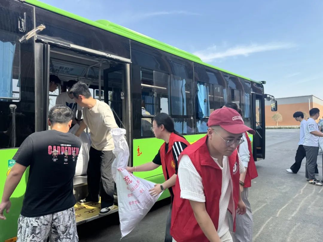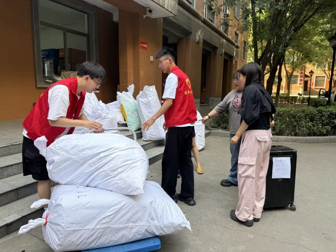 搬迁现场,党员志愿者们充分发扬“一个党员就是一面旗帜”的先锋精神,顶着高温,奔忙不息:他们细心协助学生打包、标记、整理个人物品;肩扛手提,将沉重的行李一趟趟搬运至指定转运点;耐心引导搬迁车辆有序停靠、高效装卸。汗水浸透了衣衫,热情却丝毫不减,他们用实际行动诠释了“关键时刻站得出来、顶得上去”的责任与担当。