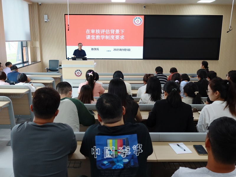 随后,我院教学质量监控专员陈学兵教授围绕“审核评估背景下的课堂教学规范”开展专题培训。他从教学理念革新、教学态度严谨化、课堂管理精细化、教学内容精准化、教学方法多元化、教学效果高效化六个维度,系统讲解了课堂教学的规范要求与优化路径,为教师应对即将到来的教学评估提供了清晰指引。