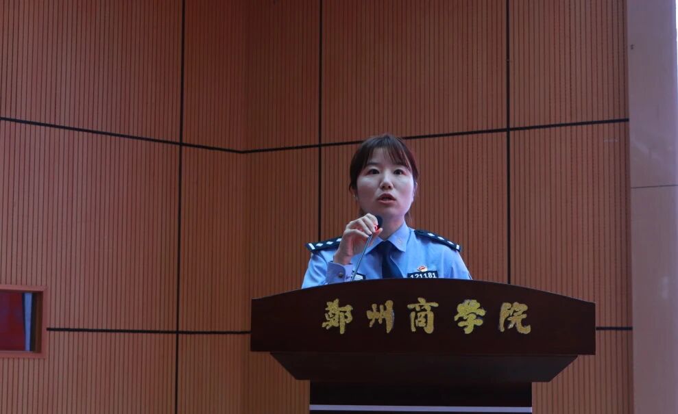 为增强新生反诈意识,守护财产安全,9月28日,巩义市紫荆路派出所范雪蓓警官在图书馆一楼报告厅为智能建造学院2025级新生开展防诈骗宣传讲座。