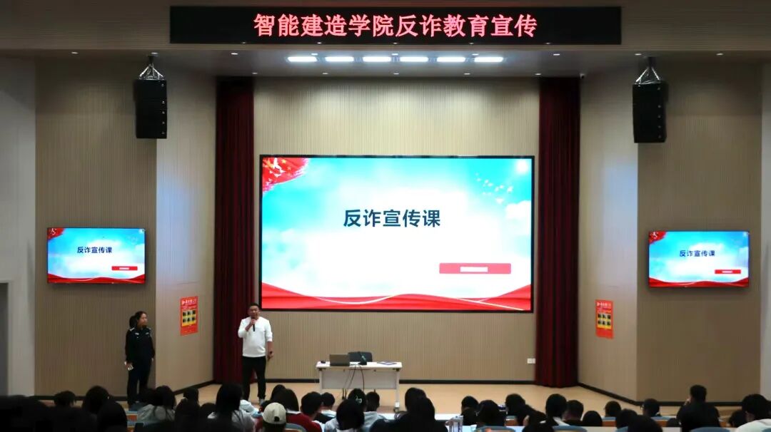 为进一步提升学生防范电信网络诈骗的意识和能力,10月14日,智能建造学院邀请巩义市紫荆路派出所民警李丹丹警官于敏行楼报告厅举办反诈专题宣传讲座。由我院团委书记刘帅主持,面向学院大二、大三学生及专升本学生开展针对性反诈教育
