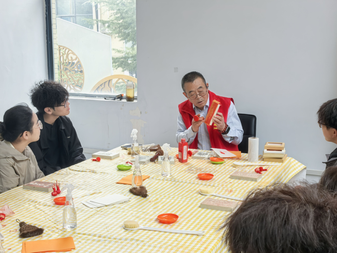 在非物质文化遗产课堂上,老师首先为大家带来了拓片与篆刻的专题讲解。他不仅细致剖析了两种技艺的历史渊源与制作流程,更通过展示精美的传统拓片作品、演示篆刻的基本手法,让大家直观感受到了其中的匠心独运与文化内涵。