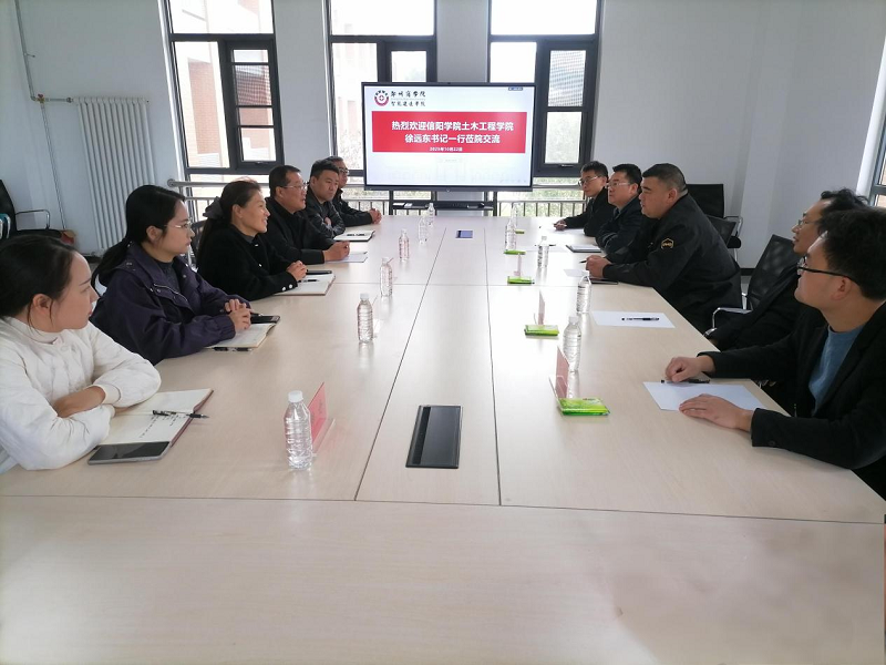 2025年10月22日,信阳学院土木工程学院徐远东书记等一行6人莅临我校调研交流,院长张燕燕、党委书记朱宏东、副院长叶灵云及相关教师接待来宾并在敏行楼C208会议室举行座谈会。
