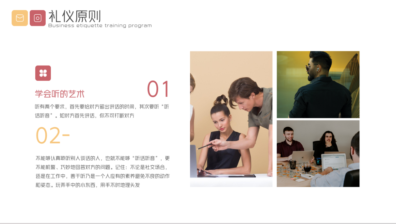 步入职场,不仅仅是知识的运用那么简单,更是个人形象与职场礼仪的展现。为进一步加强学生美育德育,增强学生的礼仪修养,我们开展了职场礼仪教育。下面我们一起了解几个职场中的礼仪: