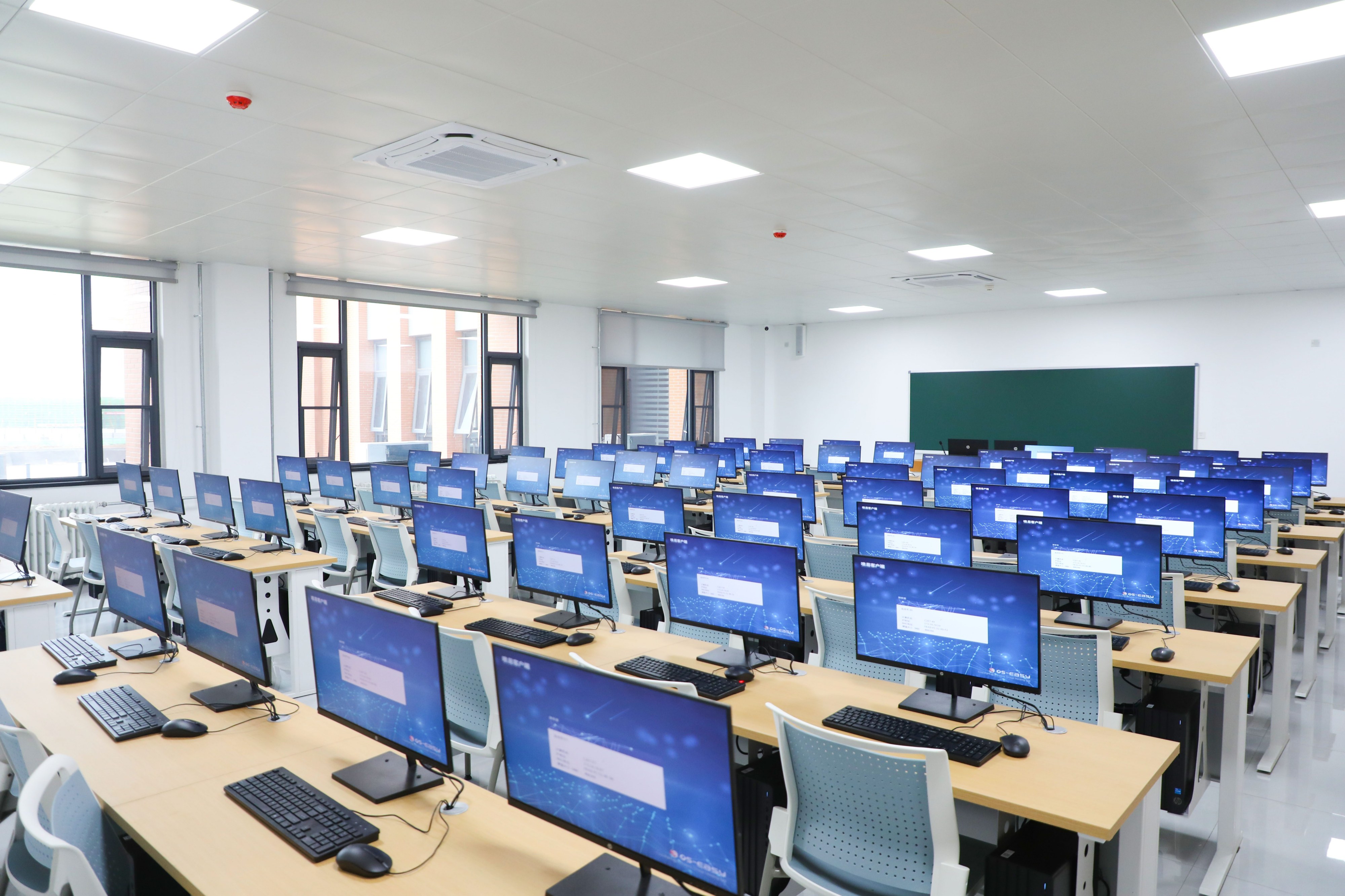 数智设计实验室(一)核心设备包括65台高性能计算机,在软件生态上,本实验室构建了从基础办公到专业领域的完整应用体系。不仅预装了WPS Office等办公软件和C语言编程环境,更全面部署了工程设计领域的核心工具,如Auto CAD、Autodesk Revit、广联达系列(云计价、土建计量)、Navisworks、斑马进度,以及结构分析软件PKPM、YJK和桥梁博士等,同时支持Visual Studio进行程序开发。能够充分满足计算机基础、软件开发、建筑工程、工程造价、结构设计等多学科的教学与实践需求,是培养学生综合信息素养与专业实操能力的重要基地。
