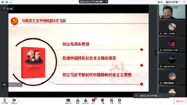 开班仪式后,全体党课学员通过在线会议进行党课第一讲。李义军老师先介绍了本次会议的主题是“学习党的十九届六中全会精神,汇聚创造复兴伟业的磅礴力量”;随后,他对改革开放以来党的历届三中全会进行总结介绍,并围绕党的十九届六中全会议的会议时间、会议概况、会议内容、《决议》的重要意义、马克思主义中国化的3次飞跃、百年历程创造的4个伟大成就、党的百年奋斗的5大历史意义等具体内容展开讲解。会议中同学们都表现的非常积极,在对话框上踊跃的与老师互动。