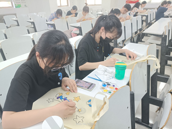 活动伊始,工作人员通过游戏问答的方式,引导学生思考塑料袋、纸袋、真皮包、布袋四类材质袋子的优劣。随即,便对此次活动的注意事项以及颜色的调配进行讲解,同学们在团结合作中对环保袋进行创作,并把未来明天的美好期盼,都化作笔下的素材,跃然“袋”上。同学们希望自己绘制的环保袋能够增强我院学生的环保意识,从自身做起,减少塑料袋的使用,共同加入到环保事业当中,为减少白色污染贡献力量。活动最后,工作人员挑选若干名参赛作品进行线上投票,最终21物流1班孙思思的票最高,荣获比赛第一名。