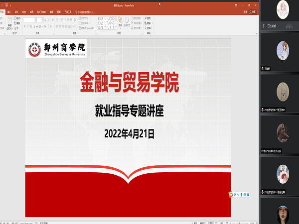 为进一步拓展我院学生视野,助力学生高质量就业,我院特邀请中国人民财产保险股份有限公司巩义支公司总经理助理史磊举办线上就业指导专题讲座,会议由教师薛潇雅主持,2019级、2020级、2021级全体无课学生参加。