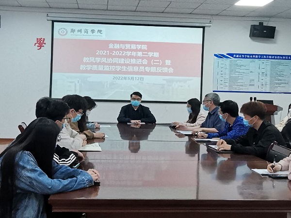 为加强教学质量监控,充分发挥学生参与教学质量监控的积极性和主动性,加强学生信息员与学院的交流及信息的双向反馈,5月12日,我院于1号教学楼110会议室召开“教风学风协同建设推进会(二)暨教学质量监控学生信息员专题反馈会”。院长杨山峰、教学秘书胡乃峰和无课学生信息员参加了此次会议,会议由学院教学质量监控督导员陈书燕老师主持。
