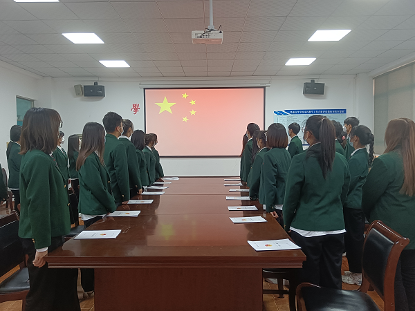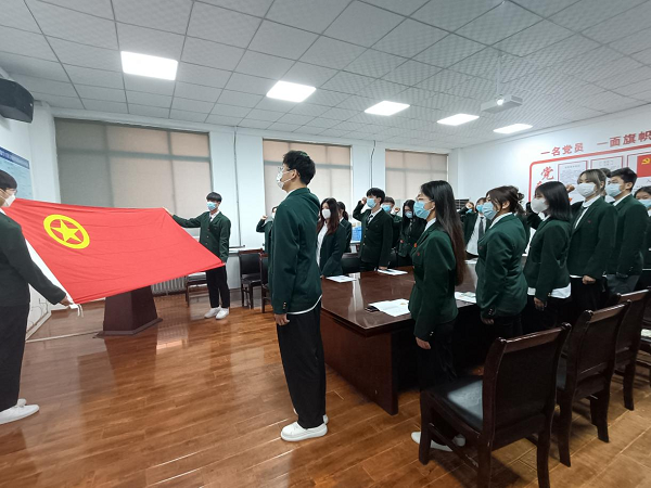 15名新入团员在团委学生代表张攀同学带领下,面向团旗庄严宣誓。誓言代表的不仅是一种精神,更是一种责任和担当。青春的誓言高昂雄浑,彰显着新时代青年的青春热血和为团组织事业奉献力量的坚定信念。
