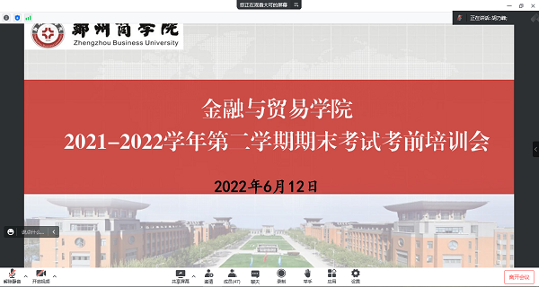 为保障期末考试工作顺利进行,扎实做好各项考务工作,严肃考纪考风,营造公平、公正、和谐的考试环境。6月12日上午,我院在腾讯会议召开2021-2022学年第二学期期末考试考前培训会,会议由教学秘书胡乃峰主持。院长杨山峰、我院全体教师及辅导员参加了此次会议。