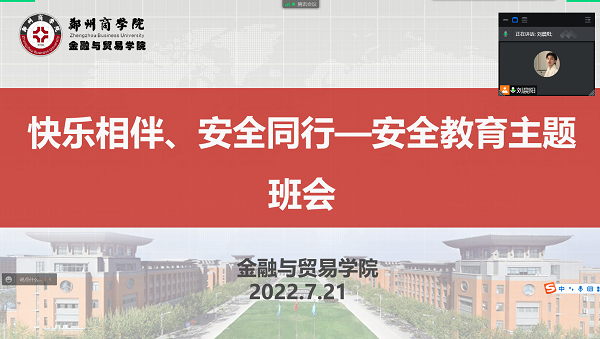 为了实时掌握我院学生暑假的动态,增强学生的假期安全意识,我院辅导员老师组织各班级于7月19日—21日开展以“快乐相伴、安全同行”为主题的安全教育班会。