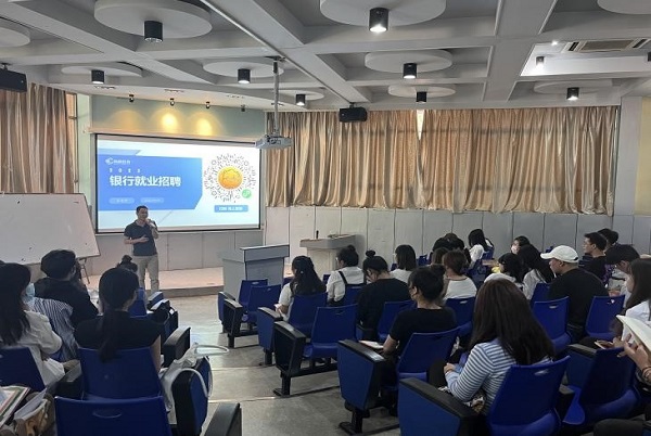 讲座开始,余老师从当下大学生的就业形势作为切入口,对银行的分类、性质以及薪资待遇等进行了详细的讲解;接下来,参照往年的银行招聘计划以及招聘的时间点,余老师为学生做了系统的梳理,让学生能够及时掌握招聘信息的动态;最后余老师介绍了银行招聘的相关流程及招聘要求,讲解了应聘简历的制作、网申技巧、笔试备考要点内容等。