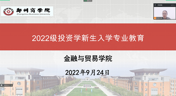 为增强投资学专业新生对专业知识的认知,明确未来发展方向和目标,更好地规划大学生活,我院投资学教研室于9月24日晚上通过线上会议的方式开展新生专业素养教育活动,由投资学教研室主任宋金璐主讲,2022级投资学专业全体新生参加此次会议。