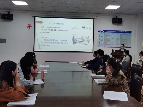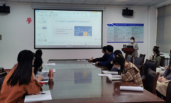 本次会议主要由新进教师徐畅、徐佳茹进行教学技能展示。首先,徐畅老师以双语教学的方式给大家展示了《外贸英语》部分章节内容,徐老师口语流畅,谈吐自信,课堂思路清晰,教学内容明确,同时抛出问题引发学生思考,课程专业度较高。