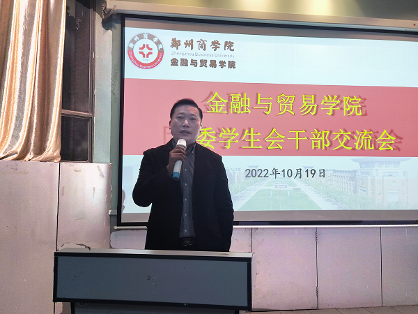 为进一步提高团委学生会自我教育、自我管理、自我服务的水平,不断增强凝聚力和战斗力,提升我院学生干部综合素质,10月19日晚,我院于1号楼101教室、201教室、202教室召开金融与贸易学院团委学生会干部交流会,会议由行政秘书兼团委书记吴森主持,党委书记吕鹏、团委学生会全体干部共同参加。