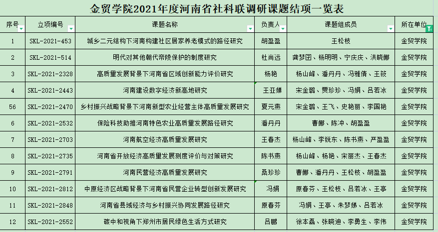 根据河南省社会科学界联合会《河南省社会科学界联合会关于2022年度调研课题立项的通知》(豫社科联字[2022]24号),我院12项2021年度河南省社科联调研课题顺利结项。望各课题组认真总结经验,积极投身学术研究,推动科研成绩更上一层楼。