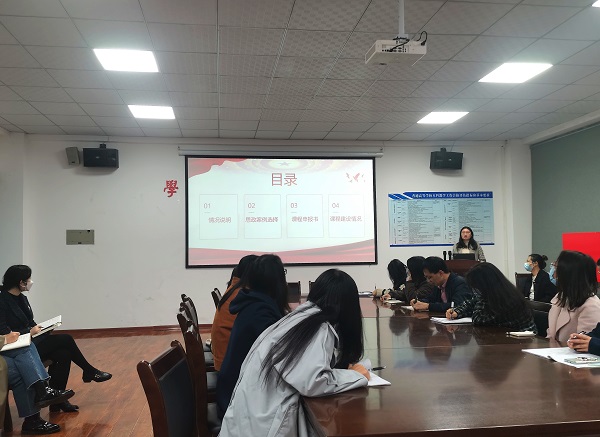 会议伊始,由杨艳老师首先对她负责的课程思政项目情况进行介绍,其次从思政案例选择、课程申报书、课程建设情况三个方面入手,向大家传授经验。随后,由王文芳老师结合自己的课程思政样板课建设情况,从课程思政目标、发掘专业课程中的思政元素等方面向大家分享经验。最后,李院长对两位老师的分享进行总结,尤其称赞杨老师关于如何选择思政案例、王老师分享的如何从实践中挖掘思政元素,介绍的非常详细,干货满满。