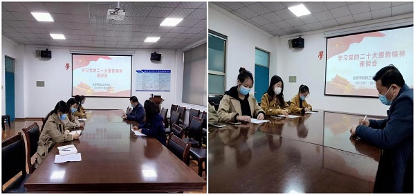 不忘初心、牢记使命。我院教工党支部党员同志通过看直播、集研讨、开座谈、写征文,持续学习、深刻领悟党的二十大会议精神,今后将始终以习近平总书记在党的二十大会议上的讲话鞭策自己,踔厉奋发、勇毅前行,做好新时代青年的培育者。