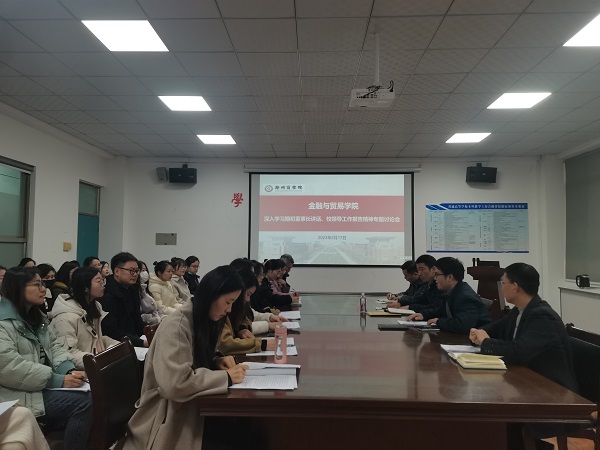 此次会议的召开,使金贸学院全体教师加深了对董事长讲话、校领导工作报告精神的理解,指明了新学期金贸学院各项工作的展开思路。金贸学院全体教师也将持续贯彻落实校领导讲话精神,以务实的姿态、饱满的干劲助力学院高质量发展。
