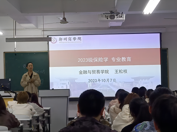 为引导2023级保险学专业新生更好更快适应大学学习与生活,增强专业认同感,明确学习目标,做好学业规划,10月7日上午,我院保险经济教研室在1201教室开展了2023级保险学专业新生专业教育,会议由王松枝老师主讲,保险经济教研室主任曹娜及全体2023级保险学专业新生参加。