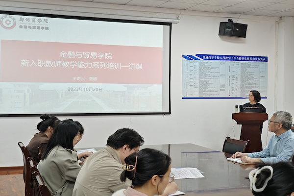 为进一步加强我院教师队伍建设,助力新入职教师尽快适应新岗位需求,切实提升新入职教师教学水平和能力,帮助新教师尽快站稳讲台,10月20日下午,我院于1号教学楼112会议室开展新入职教师教学能力系列培训——讲课。我院院长梁鹏、教学秘书胡乃峰、保险经济教研室主任曹娜及全体入职三年内新教师参与培训,培训由王文芳老师主持。