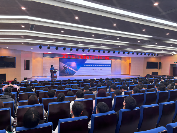 视野,加深了学生对物流行业更清晰的认识,进一步坚定了行业自信、专业自信,明确未来的职业发展方向。会议伊始,韩洁老师对肖楠经理在物流领域丰富的实践经验及大宗商品物流管理与风险防控的成就进行介绍,并表示热烈欢迎。接着,肖楠经理给学生们带来《大宗商品物流管理与风险》专题讲座。肖楠经理从大宗商品物流简介、不同运输方式下的物流管理、如何进行风险防控三个方面展开,结合自身经验将大宗商品物流常见的四种贸易模式一一讲解,强调操作风险在风险管理中的重要性,希望同学们建立严谨、认真的工作态度。最后,肖楠经理对同学们提出的就业以及物流实践的相关问题进行解答,各位师生获益匪浅。