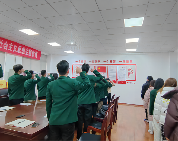 最后由党支部书记李如晓同志带领全体党员重温入党誓词。