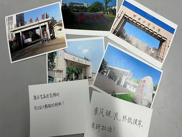 金贸学院学生第二、第三党支部为考研学生精心准备了考研学生目标院校的明信片,每位考研的同学都领取到了自己目标院校的专享“考研明信片”,明信片背面还有老师和同学们亲手写的考研祝福,包含了对考研学子的美好祝愿。