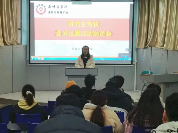 为增强党员参与志愿活动的主动性,提高自身的社会责任感和使命感的需要,促使党员成为社会公共精神的倡导者,12月21日,我院于一号教学楼101教室召开研究生考试党员志愿活动动员会,会议由金贸学院学生第二党支部支部书记曹君秀主持。