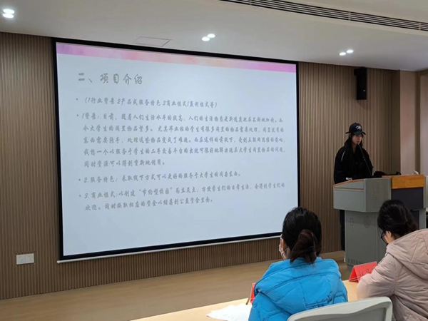 本次比赛聚焦于创业模式设计、市场分析、风险投资、商业计划书撰写等方面的内容,从而全面考察选手的综合能力和创业思维。六位参赛选手分别递交自己所撰写的项目计划书,并结合PPT进行项目展示、讲解。参赛选手沉着冷静、条理清晰地表达自己的观点,在短时间内有效传递了项目的相关信息,全方位、多层次地展示了项目的优势和创新点。