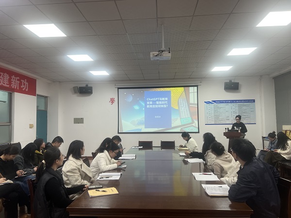 本次会议主要由桑珍珍老师、赵冰洁老师和赵翊冰老师依次对培训内容进行转训分享。首先,桑珍珍老师对平安全流程智能化、平安致力“保险+科技”发展、在运营方面投入人工智能等方面进行分享,展现行业发展的快速变化。接着,赵冰洁老师对金融科技课程建设与人才培养专题培训内容进行分享,对目前金融发展的方向及金融科技人才需求进行阐述,突出高校培养金融科技人才的重要性。随后,赵翊冰老师从人工智能的发展历程、ChatGPT与以往人工智能机器人的区别、ChatGPT对教育界的挑战及智能教育如何转型等四个方面进行了简要的分享,使各位老师感受人工智能的深刻影响。最后,贾孝魁副院长对本次外出培训成果转化进行总结,再次强调培训转化的重要性、及时性,希望各位老师将培训的前沿知识、先进的理念及时融入教学中,提升自我教学水平。
