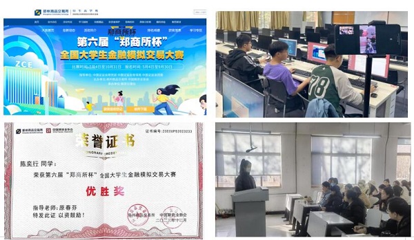 我院以专业实习为依托,组织学生参加第八届全国大学生金融创新大赛,分别荣获一项团体二等奖、两项团体三等奖的佳绩、参加第六届“郑商所杯”全国大学生金融模拟交易大赛,学生获得优胜奖。面向全校学生组织保险产品设计大赛,参赛的各组同学积极从生活中找素材,合作完成设计方案并参与展示,最终评选出一等奖1队、二等奖2队及三等奖3队。着力培养学生的创新意识与实践能力,充分发挥学科竞赛“以赛促教、以赛促学、以赛促创”的积极作用。