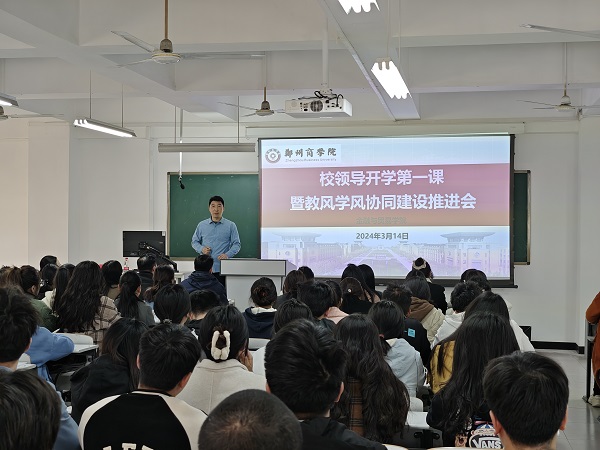 为深入学习期初教职工大会董事长和校领导讲话精神,进一步推动教风学风建设,提升学生考研信心,3月14日下午我院在1号教学楼201举行校领导开学第一课暨教风学风协同建设推进会,校长助理刘升阳教授,我院院长梁鹏、党委书记吕鹏、副院长贾孝魁、全院教师、辅导员及全体2025届考研学生参加了此次会议,会议由院长梁鹏主持。