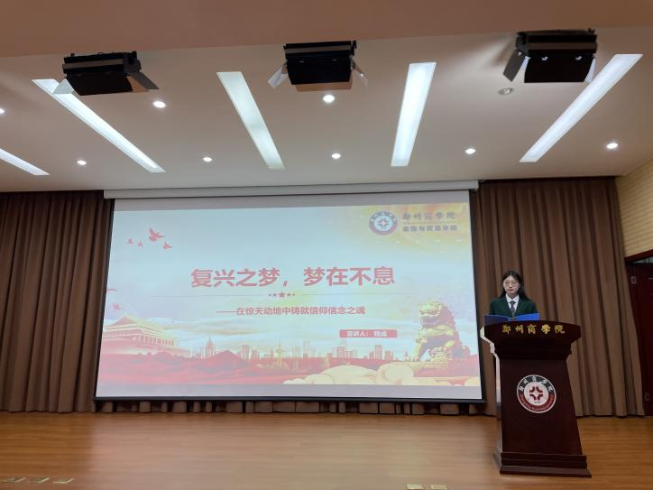 本次宣讲活动由“薪火”宣讲团成员22投资2班程成同学主讲。宣讲伊始,宣讲人以梦想从何处来为切入点,进一步深入到中国梦、民族梦,坚定了我院青年的理想信念。接着,她通过阐述如何实现中国梦,激励我院青年为实现中华民族伟大复兴中国梦而不懈奋斗。最后,宣讲人将“中国梦”与“我的梦”紧密相连,为我院青年引得思想“活水”,促使我院青年在实现中国梦的道路上赓续前进,勇攀高峰