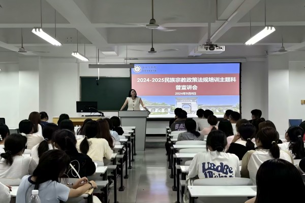 为深入学习贯彻习近平新时代中国特色社会主义思想,持续做好民族团结工作,铸牢中华民族共同体意识,进一步提高学生民族宗教法律法规意识,帮助学生坚定实现中华民族伟大复兴的理想信念,自觉抵制宗教渗透,我院新生辅导员老师们于9月8日晚上召开“民族宗教政策法规宣传教育”主题班会。
