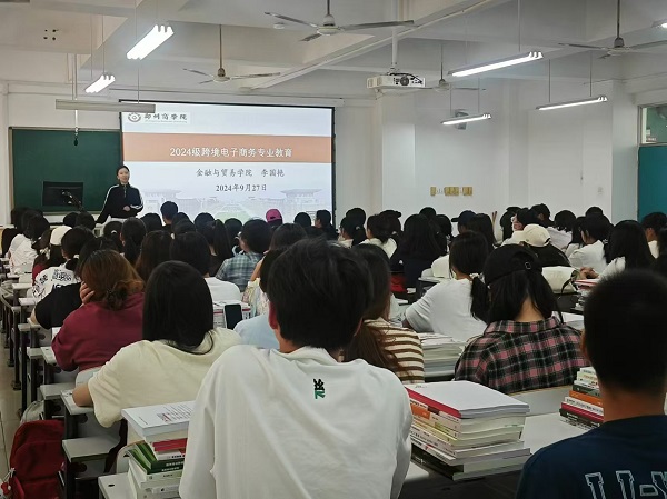 为引导2024级跨境电子商务专业新生深化专业认知,稳固专业思想,树立专业自信,做好学业规划,更快适应大学生活,9月27日下午,我院于1号教学楼401教室组织开展了2024级跨境电子商务专业新生专业教育活动。我院跨境教研室主任李国艳、2024级跨境专业辅导员任哲衡、优秀校友乔雨飞和全体2024级跨境专业新生参加此次会议,会议由李国艳老师主持。