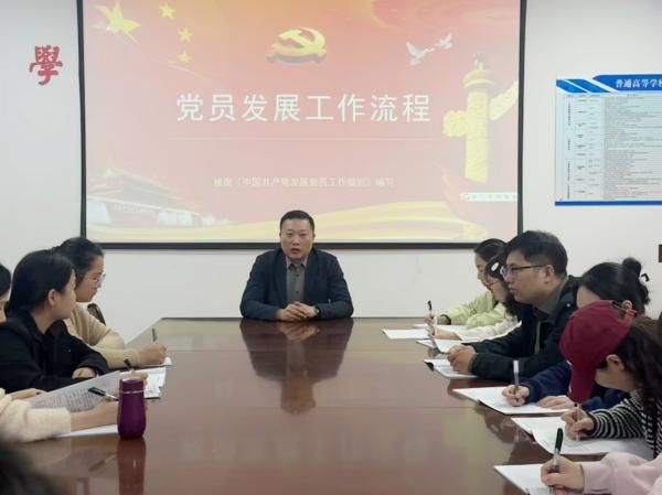 为了深入贯彻落实《中国共产党发展党员工作细则》,切实提升新进教职工的思想政治素养,增强党组织在青年学生和青年教师中的感召力与凝聚力,金贸学院10月15日对新进教职工及学生开展“入党流程”知识讲解培训会议。
