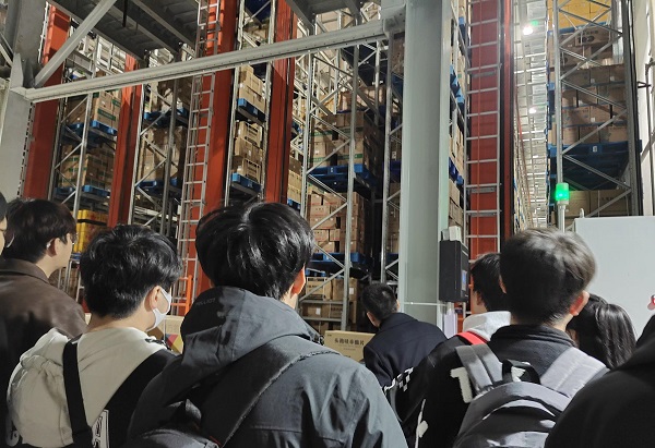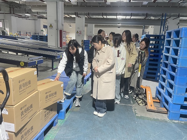 在实践学习过程中,学生们展现出了浓厚的求知欲和探索精神,不断向企业负责人提出问题,企业负责人耐心地解答了学生们的问题,并对他们积极的学习态度给予了高度赞扬。最后,学生们亲自操作货到人拣选站、托盘提升机等物流作业设备,通过亲身体验,进一步加深了对物流业务操作流程的理解。这种将理论知识与实践操作紧密结合的学习方式,极大地提升了学生们的专业素养和实践能力。