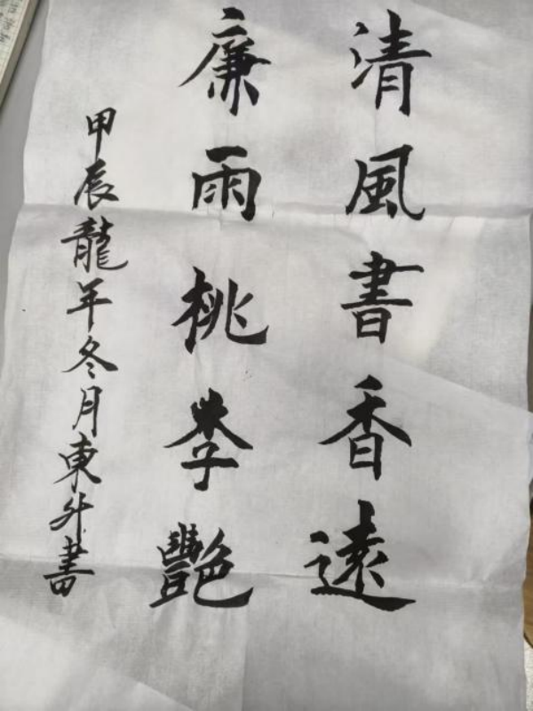 作品简介:书法作品字体工整,笔法有力,展现出一种古朴典雅的韵味。“廉雨桃李艳,清风书香速”这句话寓意着廉洁之风如同春雨一般,滋润桃李,使其茁壮成长;而清风则带来了书籍的香气,暗示着廉洁的环境有助于知识的传播和文化的繁荣。整体传达出对廉洁文化的赞美和推崇。润桃李,使教育环境更加清正。丰富了廉洁理念,塑造了师生正确的价值观,体现了廉洁文化在教育中的重要意义。