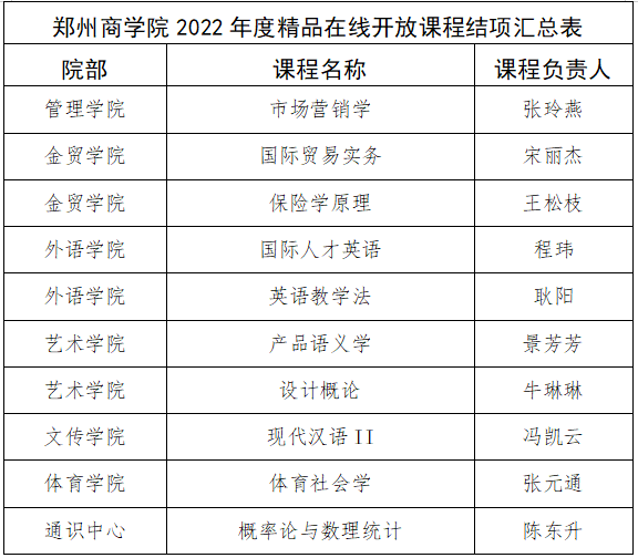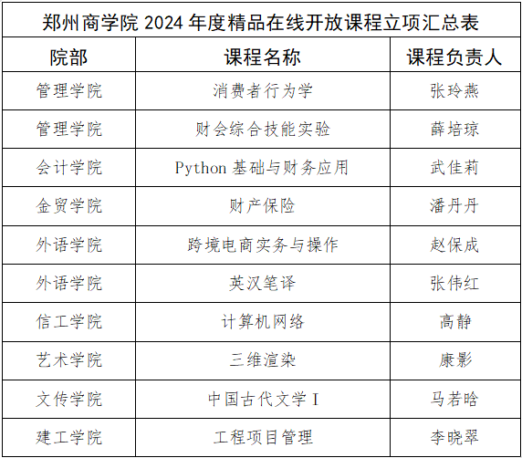 根据《关于开展2024年度校级精品在线开放课程立项及2022年度校级精品在线开放课程结项验收工作的通知》及我校教学工作任务安排,在各单位申报推荐的基础上,经学校教指委专家评审,现对2024年度《消费者行为学》等10门校级精品在线开放课程立项结果及2022年度《市场营销学》等10门校级精品在线开放课程结项验收评审结果予以公示,公示排名不分先后,立项及结项名单具体见下表: