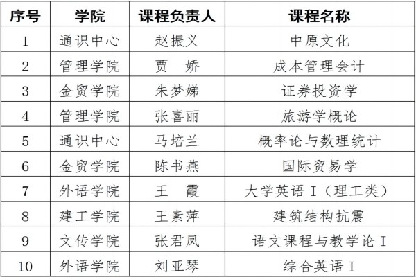 根据我校《关于开展2024年度校级课程思政样板课程立项建设的通知》的文件要求,我校开展了2024年度校级课程思政示范(样板)课程的立项申报及评审工作,在各单位申报推荐的基础上,经校教学指导委员会评审,现对2024年度《中原文化》等10门校级课程思政示范(样板)课程立项结果予以公示,公示排名不分先后,具体见下表: