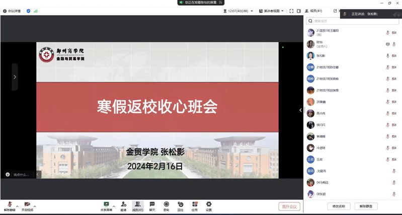 为帮助同学们快速调整状态,以昂扬向上的姿态迎接新学期,2月16日晚,我院组织召开2024-2025学年第二学期开学收心班会。我院党委书记吕鹏、团委书记吴森深入班会现场,助力全体同学收心聚力,共同为新学期的学习与生活凝聚力量、明确方向。