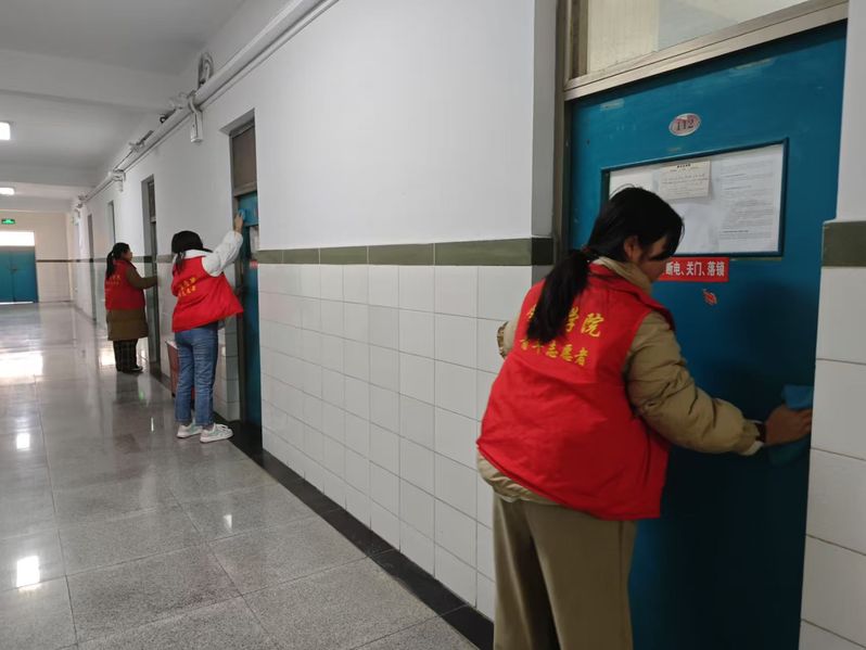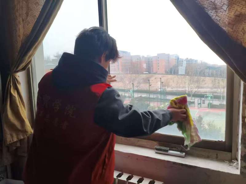 在此次专项活动中,同学们积极配合,自行对各自宿舍的门窗进行了全面的清理,保证每个寝室的门窗都干净整洁。同时,我院安排志愿者对毕业生的宿舍门窗进行了彻底的清理,确保所有门窗无污渍、无尘埃。在本次活动中,志愿者们积极参与,认真组织,此次活动的顺利开展为同学们营造出健康、舒适的宿舍环境。