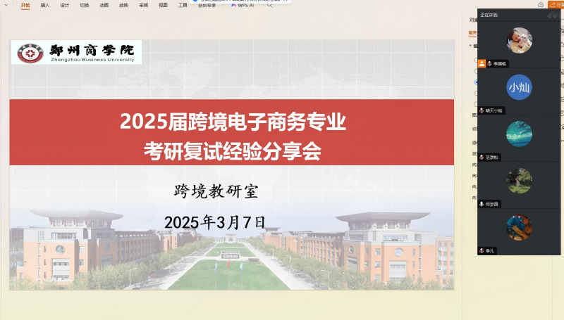 为缓解考研学子紧张情绪、助力考研学子顺利通过复试,3月7日,我院跨境电商教研室以腾讯会议的形式举办了考研复试经验分享会。会议邀请跨境教研室青年教师张倩倩以及成功考取沈阳师范大学研究生的学生殷文静进行分享,考研复试学子参加本次分享会。