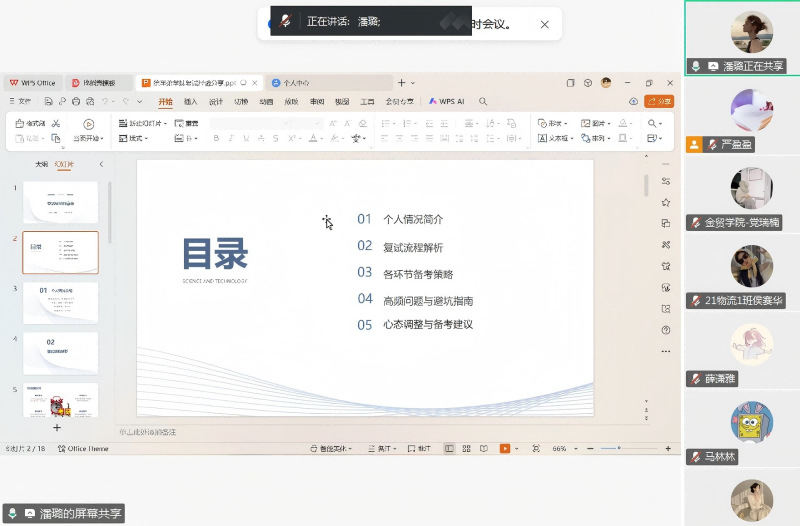 会上,现就读于辽宁工程技术大学的马林林学姐的分享主要围绕穿搭建议,资格审查和面试建议三大核心板块。在穿搭建议方面,她分别指出男生女生适合的穿搭;其次,资格审查,精心准备个人资料。至于面试技巧,她提醒同学们怎么样制作个人简历,并撰写中英文版本的自我介绍,凸显个人优势与亮点,专业问题的回答时间通常控制在3-5分钟内,因此要着重关注时事热点,同时留意并巩固那些可能被忽略的细碎知识点。