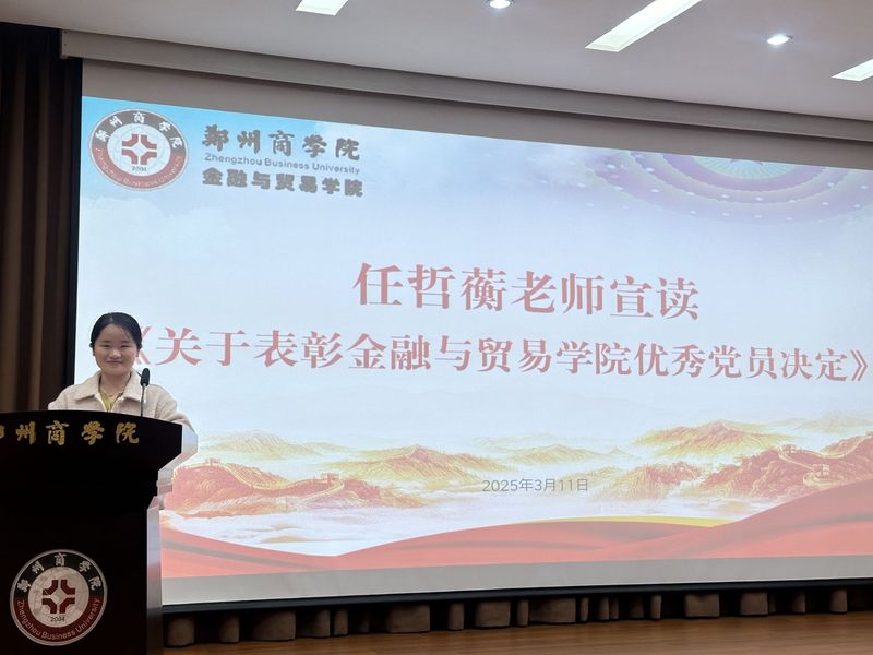 接着,由任哲蘅老师宣读《关于表彰金融与贸易学院优秀党员决定》并对优秀党员进行表彰。