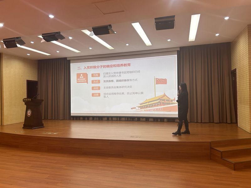 李老师围绕入党的基本流程展开讲解,从申请入党、入党积极分子的确定和培养教育,到发展对象的确定和考察,再到预备党员的接收、考察和转正,带领同学们深入了解了党组织对党员在政治素质、思想觉悟、道德品质、工作表现等方面的高标准和严要求,激励同学们以更高的标准来规范自己的言行。最后,李老师提醒大家一定要不忘初心,牢记使命,不断加强学习、提升能力,积极向党组织靠拢,争取早日成为一名合格的共产党员。