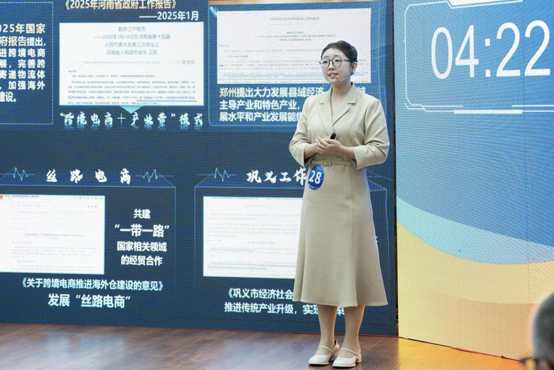 2025年3月14日上全国第二届大学生职业规划大赛河南省决赛就业赛道高教组在华北水利水电大学举行。本届大赛以“筑梦青春志在四方,规划启航职引未来”为主题,在全省146万大学生报名参赛的基础上来自省内各高校800多位选手进入决赛,其中高教组就业赛道竞争尤为激烈。在指导老师王柳雅的指导下,我院22跨境电商2班王俊青同学在强手如云的赛场上脱颖而出,最终斩获高教组就业赛道铜奖,展现了金贸学子卓越的就业竞争力。