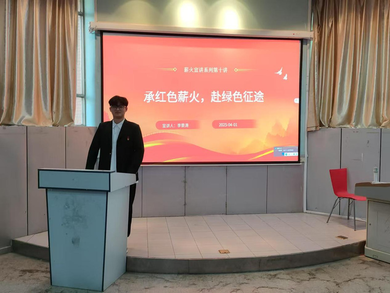 为深化我院青年的思想认知,促进我院青年在时代发展中将爱国精神与环保理念相结合,担当起国家富强民族复兴的伟大使命。3月27日,我院“薪火”宣讲团于1号教学楼101会议室开展“承红色薪火,赴绿色征途”——薪火宣讲第十讲。